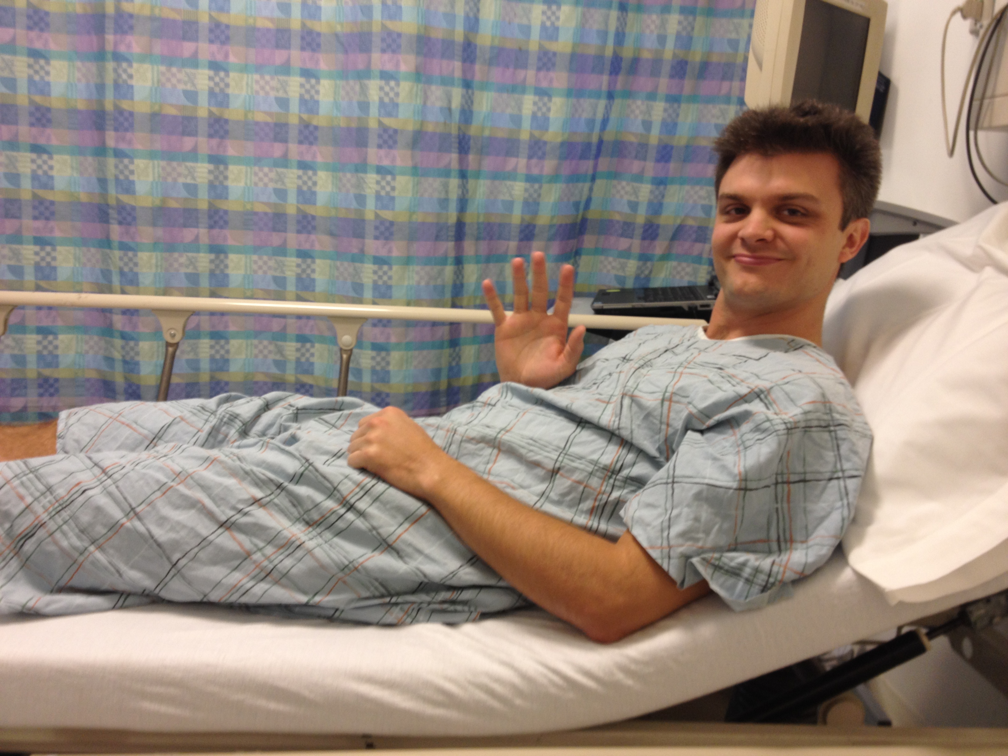 After a short period in the Family waiting area at HSS, I was called into Pre-Op prep wing. Following my nurse we walked passed room after room of patients waiting anxiously in their beds. Peering in between the curtain dividers I would catch a snap shot of their emotional roller coaster, as each person road highs and lows before entering the OR and everyone was a different point along the ride. People who seemed happy were at the beginning of the roller coaster, slowly ascending the chain link rise that would end in a free fall of emotional chaos. The suspense would build as different hospital members would enter the partitioned rooms, with a new