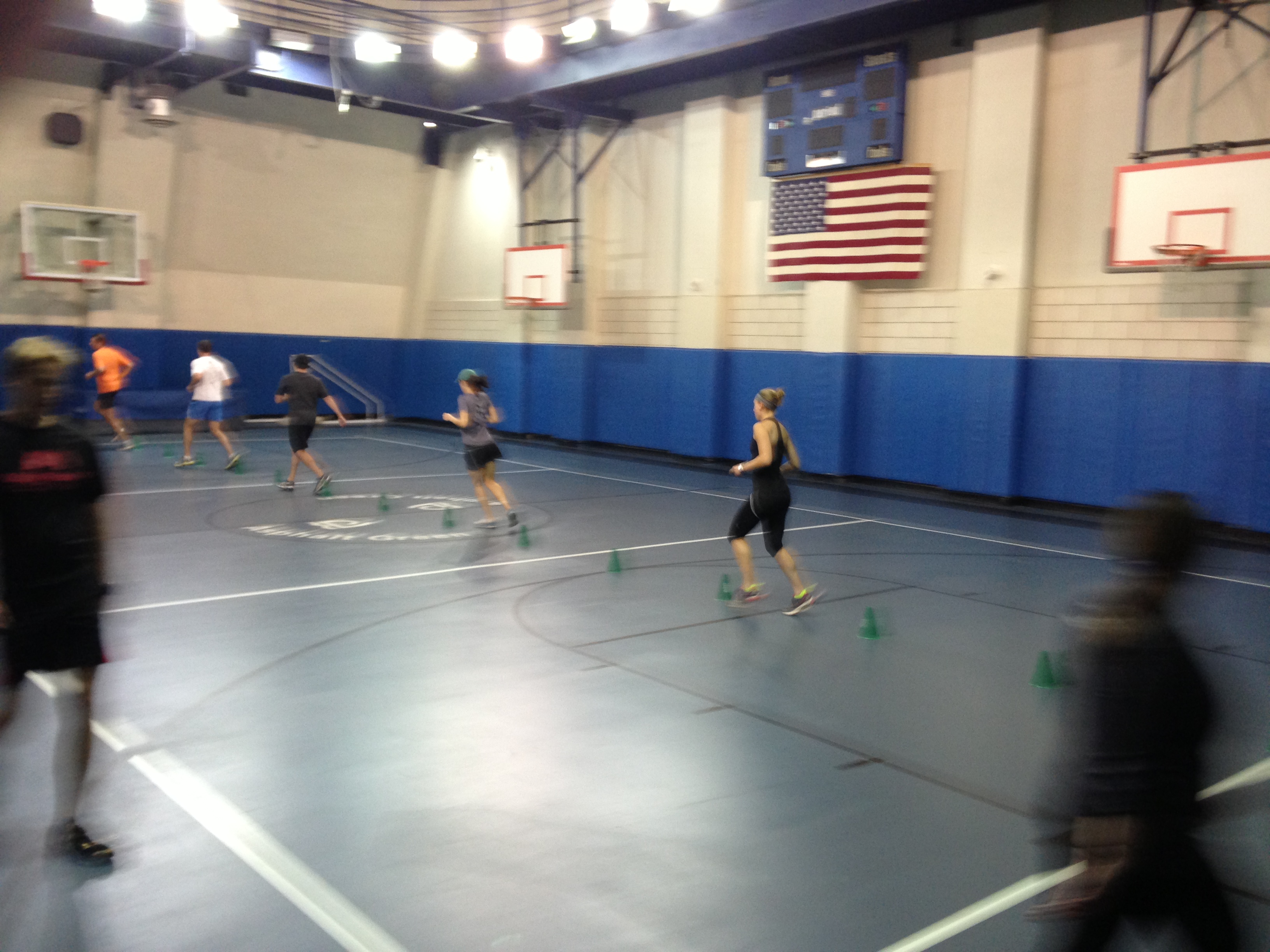 Speeeeeeeeeeeed was excellent, shuttle sprints, the length of a baseketball court, plymetric work, hops, jumps, skips, butt kicks, planks, pushups, core work, side planks we did it all in the hour workout. Felt great and spent some time post workout shooting hoops with the guys. (see cover image)